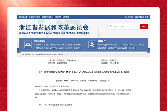 近日,浙江省發(fā)改委發(fā)布《2024年浙江省服務業(yè)領軍企業(yè)名單》……